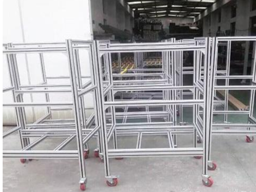 威海周转车告诉大家在结构上,一般的铝型材周转车采用为工业铝型材来作为框架,一般工业铝型材能够被分为4040铝型材,3030铝型材以及4545铝型材,运用于铝型材周转车上的一般为4080铝型材。